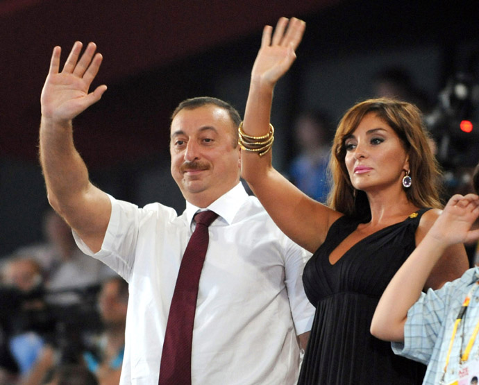 >> 阿塞拜疆總統阿利耶夫和夫人在開幕式上