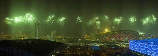 | 奧運會開幕式上的焰火表演。新華社記者 徐家軍 陳凱 攝 |