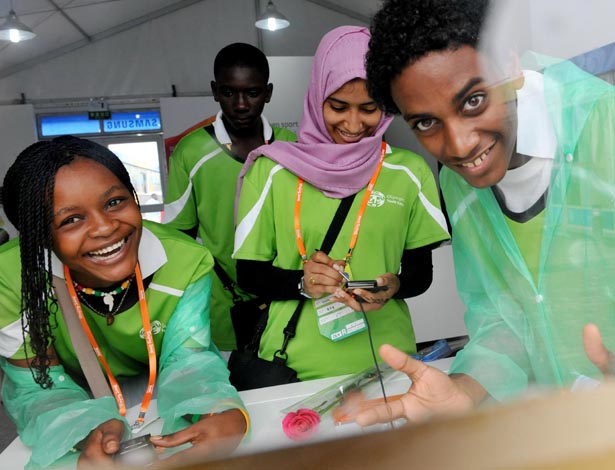 8月10日,營員們在北京奧運村商業文化街玩耍。當日,北京2008奧林匹克青年營的481名營員參觀了北京奧運村。北京2008奧林匹克青年營于8月6日在北京正式開營。本屆青年營將圍繞體驗奧運、交流學習、了解中國三條主線開展活動。