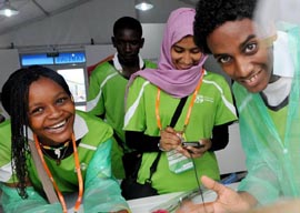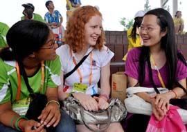 8月10日,北京2008奧林匹克青年營的481名營員參觀了北京奧運村。北京2008奧林匹克青年營于8月6日在北京正式開營。本屆青年營將圍繞體驗奧運、交流學習、了解中國三條主線開展活動。
