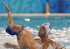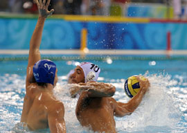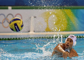 8月10日,北京奧運會水球比賽在奧體中心英東游泳館拉開帷幕,首場比賽西班牙隊以16比6戰勝加拿大隊。