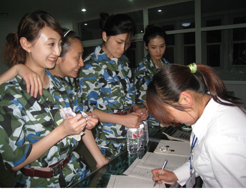 北京時間6月3日晚,來自全國各地的近200名奧運會開閉幕式禮儀引導員入住京郊的訓練基地。奧運會到來之前,她們將在這里進行為期兩個月的集訓。這些姑娘們將在奧運會開幕式上閃亮登場,向全球觀眾展現中國女性獨特的氣質與魅力,因此這段時間里,她們的食宿和訓練課程是人們關注的焦點:怎樣打造她們,怎樣呵護她們,想必沒有人不關心。