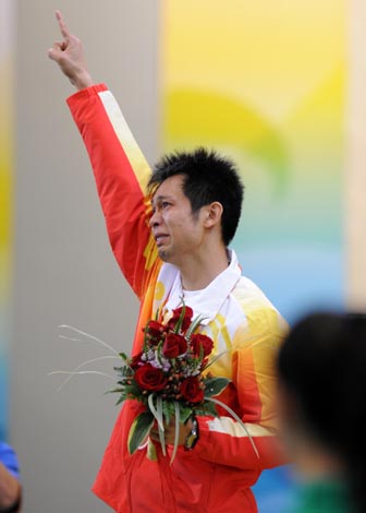 8月11日,中國選手朱啟南在頒獎典禮上流淚。當日,北京奧運會射擊男子10米氣步槍決賽在北京射擊館舉行,中國選手朱啟南以699.7環的成績獲得亞軍。