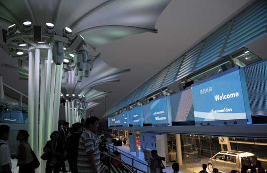 2008年8月9日,在文德恩教授致詞后,大眾汽車的奧林匹克主題館迎來了它的第一批嘉賓。這個與鳥巢遙相呼應,承載著大眾汽車奧運夢想的開放式場館正式點燃了激情。 據大眾汽車集團(中國)市場部總監胡波先生介紹,這一主題館是15家贊助商主題場館中惟一的開放式建筑,一方面為了體現大眾汽車透明、開放的企業文化,另一方面也希望帶給參觀者更多與自然接觸的機會。雖然只是一個使用兩個月的臨時建筑,并且據大眾汽車估算,每一名參觀者只會在其中逗留15到20分鐘左右,但是大眾汽車卻專門請來德國設計事務所進行設計,并由一家駐上海的德國公司進行施工。據胡波先生透露,這一次的投入幾乎與一次A級車展相同,但他同時表示,這一場館絕不會成為汽車展示廳,而是展現品牌、企業文化與奧林匹克精神相結合的一個舞臺。 胡波先生介紹說,在場館上方是戶外70米長的太陽能背景墻與9塊可移動式LED屏的結合運用。在奧運期間,主題館內會進行每場20分鐘左右的循環表演,不僅屏幕上會播出一些影片,而且會有特技演員與屏幕進行互動式表演。在奧運比賽的重要時刻大屏幕會進行現場直播,讓每一名參觀者時刻感受著奧運的氣息。