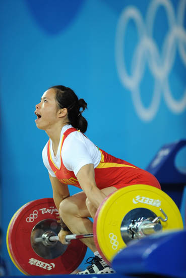 當獲得奧運冠軍都不再令人驚奇,似乎只有創造歷史才足夠表現陳艷青在女子舉重58公斤級中的霸主地位。在11日的北京奧運會女子58公斤級比賽中,陳艷青分別兩次刷新挺舉和總成績奧運會紀錄,以244公斤的總成績傲視群芳,同時還將奧運會女舉衛冕第一人的頭銜永久保留。 三度退役、三度復出的陳艷青本身就算得上一個傳奇人物,但她似乎還缺少一個更傳奇的大賽經歷。北京奧運會成就了這個傳奇。自2000年女子舉重進入奧運會以來,尚沒有任何一名女子選手能夠在奧運會上衛冕,今天,陳艷青做到了這一點。 這也是北京奧運會舉重賽場截至目前最無懸念的一場比賽。陳艷青甚至需要將原本準備的兩個開把重量各降低2公斤來“適應”對手,這也導致了她需要“提前”出場。根據她原定的開把重量,她的出場次序基本要在所有選手結束比賽之后。 100公斤、103公斤、106公斤,這樣的抓舉重量對于陳艷青而言毫無困難,2006年她創造的世界紀錄高達111公斤。但這個重量已經領先第二名足足有7公斤!瓣惼G青太強大了,”奪得二、三名的俄羅斯選手瑪·沙伊諾娃和朝鮮選手吳貞愛賽后異口同聲。中國女隊總教練馬文輝說:“陳艷青非?炭嗾J真,她當過教練,能很快理解教練的想法和意圖。同時,這場比賽要比想象中容易得多,俄羅斯選手沒能發揮出她的最好成績! 沒有人懷疑陳艷青奪冠的可能性,所有人都在期待她創造歷史,打破紀錄。 不過,這一次朝鮮人走在了前面。陳艷青挺舉開把降到130公斤,給了吳貞愛率先改寫挺舉奧運會紀錄的機會。吳貞愛在自己的最后一把舉起131公斤,這一重量打破了奧運會挺舉紀錄。此前,這一紀錄還停留在130公斤,陳艷青四年前奪冠時也只舉起130公斤。 但這個下午是屬于陳艷青的。132公斤、138公斤,陳艷青在兩次改寫奧運會挺舉紀錄的同時,還兩次打破自己保持的奧運會總成績紀錄。244公斤的總成績高出第二名沙伊諾娃17公斤之多,吳貞愛和泰國選手旺·甲梅因同樣舉起226公斤,吳貞愛以0.1公斤的體重“優勢”摘得一枚銅牌。