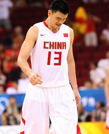 8月12日,中國隊13號姚明在比賽中。
