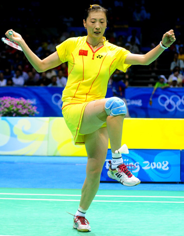 8月13日,比賽中羽毛球打在張寧腿上,她的動作猶如在踢毽一般。在當日進行的北京奧運會羽毛球女子單打1/4決賽中,張寧以2比1戰勝法國選手皮紅艷,晉級四強。