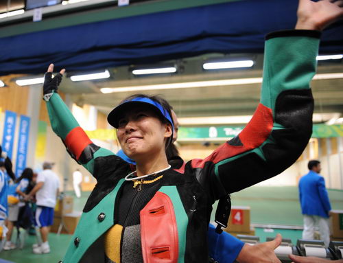 中國選手杜麗在賽后慶祝勝利(新華社記者 焦衛平 攝)