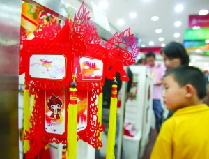 鉛筆盒、書包、各種各樣的筆、墨、硯、書簽、日記本……全都烙上了“福娃印”。會做運動的福娃筆很好玩,筆的上端采用運動福娃造型,福娃擺著不同項目的姿勢,綠色的妮妮打羽毛球、福娃京京忙舉重。當按動筆上的按鈕,福娃的手腳就開始活動,完成各自項目的姿勢。遺憾的是,記者沒買到,最后一支被一個小朋友“捷足先登”了,只是飽了個眼福。