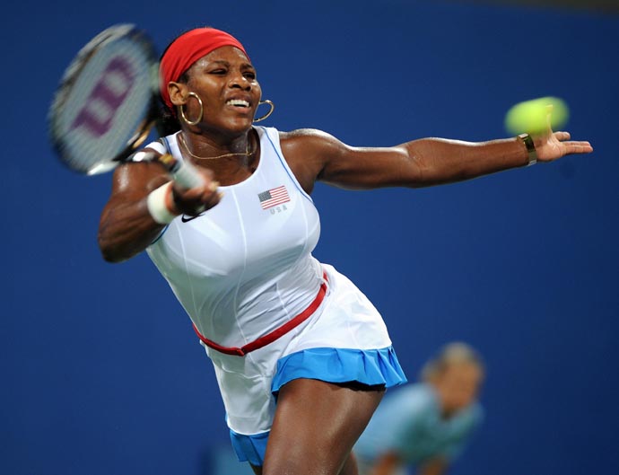 8月14日,小威廉姆斯在比賽中回球。