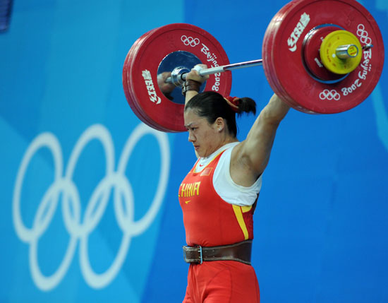 中國女將本屆奧運會第四次站在舉重賽場的最高領獎臺上。曹磊在女子舉重75公斤級比賽中摘得的這枚金牌,是中國女舉第一次在這個級別摘得奧運會金牌,同時也實現了中國女舉在奧運會上奪金的“滿貫”——至此中國女舉已經獲得過奧運會所有級別的冠軍。 15日的比賽再次毫無懸念。和自己的三名隊友一樣,曹磊在抓舉比賽結束后已經基本鎖定勝局。最終她282公斤的總成績高出第二名16公斤之多,同時,她還將該級別奧運會三項紀錄都寫上了自己的名字,其中兩次刷新總成績紀錄。不過,她最終沒能刷新世界紀錄。 “最后一把我不太專注,因為我忽然想到去世不久的媽媽!辟惡笤诨旌蠀^面對記者采訪時,胸前掛著“金鑲玉”金牌的曹磊泣不成聲,“這塊金牌,我要獻給我的祖國人民和我的母親! 中國女隊總教練馬文輝告訴記者,在名單公布后,他想了又想,還是決定告訴曹磊她母親去世的消息,“我想她有這個承受能力,我們不能瞞她! 俄羅斯選手娜·葉夫斯秋欣娜15日的表現一般,這位2007年世錦賽銅牌得主抓舉成績僅為117公斤,不到一年前,她曾舉起128公斤的重量。曹磊出場時,所有對手都已經結束了比賽,曹磊三次試舉全部成功,最終成績為128公斤,這比第二位的哈薩克斯坦選手阿·瓦熱寧娜多了9公斤,也創造了新的抓舉奧運會紀錄。 瓦熱寧娜和葉夫斯秋欣娜選擇了為銀牌而戰,這讓曹磊的奪冠沒有了意外的可能。將開把重量從155公斤降到147公斤并成功舉起后,曹磊實際上已經穩獲金牌,同時,她還打破了總成績的奧運會紀錄。瓦熱寧娜和葉夫斯秋欣娜最后一把都舉起147公斤,最終以266公斤和264公斤分列二三位。 挺舉第二把154公斤,曹磊再次刷新了挺舉和總成績奧運會紀錄。 最后一把曹磊要了159公斤,這個重量和挺舉世界紀錄持平,但如果舉起,曹磊將刷新總成績世界紀錄。不過,曹磊最終沒能舉起這一重量,最終以282公斤的總成績奪冠。 這是中國舉重隊本屆奧運會獲得的第七枚金牌,這個數字再次刷新了舉重隊奧運會最好戰績。同時,這也是中國女隊繼2000年悉尼奧運會后再次“包攬”所參加級別的四枚金牌!拔覀冏鲞^最壞的準備,這四場比賽我們每場都已盡心盡力!瘪R文輝總結說。 而本屆奧運會上獲得48公斤級和75公斤級金牌,也讓中國女隊享有了另一項榮譽——三屆奧運會,十一枚金牌,女子所有級別的金牌拿了個遍。