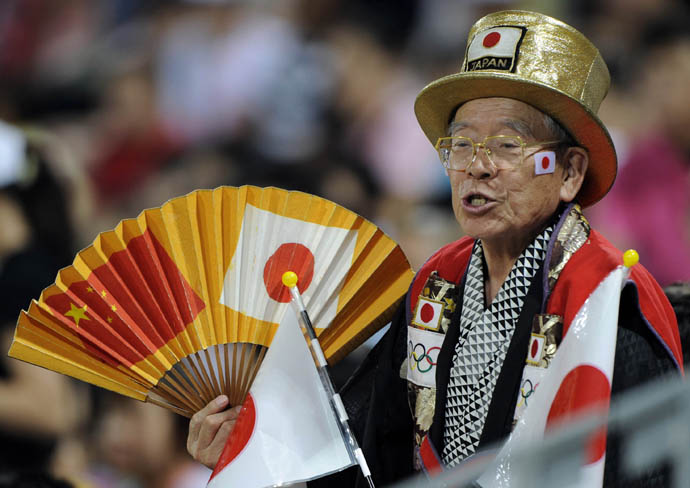 8月15日,一位日本棒球迷在現場為球隊助威。