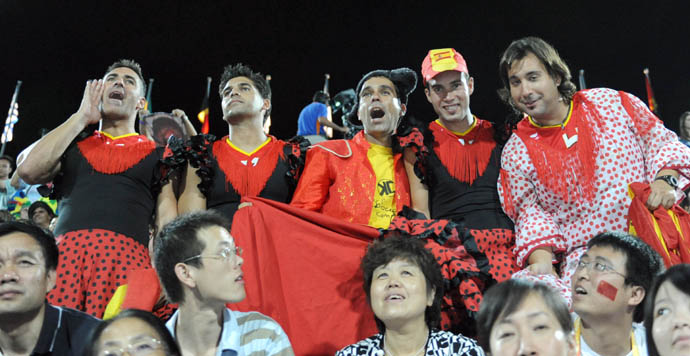8月16日,西班牙球迷來到朝陽公園沙灘排球場觀看比賽。當天,這里舉行了男女16強復賽。