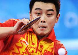 8月16日,中國隊在北京奧運會乒乓球男團半決賽中以3比0戰勝韓國隊,挺進決賽,將于18日與德國隊爭奪金牌。