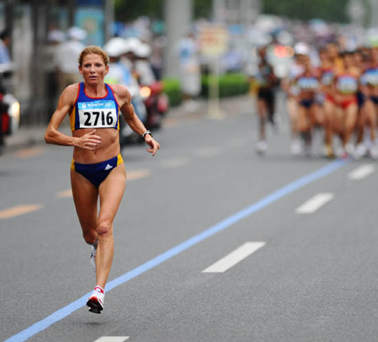 馬尼亞的38歲老將托梅斯庫·迪塔今天在北京奧運會女子馬拉松比賽中一路領先,以2小時26分44秒的成績獲得冠軍,我國選手周春秀以2小時27分07秒獲得銅牌,成績僅比肯尼亞的卡·恩德雷巴慢了1秒。 我國選手朱曉琳獲得了第四名,成績是2小時27分16秒。世界紀錄保持者、英國35歲的老將拉德克里夫在比賽中一度停下退出,但隨之又鼓足氣力堅持了下來,她最終雖然僅獲得第23名,但頑強的精神贏得了觀眾的喝彩。 在今天的比賽中,托梅斯庫·迪塔在跑過20公里后,突然變速,甩開眾人形成單一箭頭,到了25公里時已經把第一集團拉下了30秒。周春秀和朱曉琳一直埋伏在第一集團里面,英國老將拉德克里夫在跑過25公里后就掉了下來。 托梅斯庫·迪塔的個人最好成績為2小時21分30秒,本賽季最好成績是2小時27分45秒。上屆奧運會上,她排名20位。賽前,她并不是奪標的熱門人物,比她成績好的選手超過10位,但是,今天在綿綿小雨中,這位羅馬尼亞老將狀態甚佳,她通過35公里處的成績是2小時02分整,將她身后跟著的第一集團的8名選手甩下100多米。隨后,她將優勢一直保持到終點,比較輕松地贏得了金牌。 銀牌的較量非常激烈,還剩最后三公里時,周春秀和朱曉琳頑強地和肯尼亞的瑪·科穆和恩德雷巴較量,四人緊緊咬住,誰也甩不開誰。進入鳥巢后,周春秀在最后250米處沖刺超越恩德雷巴,但肯尼亞人在最后一個彎道上實行了反超。兩人一直較量得難解難分,最終,周春秀以1秒之差失去銀牌。