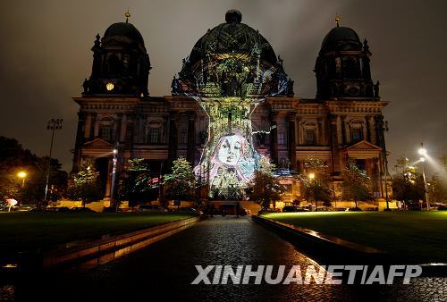 8月15日,德國柏林大教堂被燈光照耀得熠熠生輝。在燈光藝術節上,歐洲藝術家們用彩燈裝飾教堂,吸引了許多觀眾。新華社/法新
