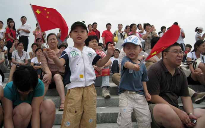 8月17日,孩子們在奧林匹克森林公園欣賞音樂噴泉表演。當日,4萬觀眾來到北京奧林匹克公園游覽。占地1000多公頃的北京奧林匹克公園包括奧林匹克森林公園、景觀大道、國家體育館、國家體育場、國家游泳中心和運動員村等設施。