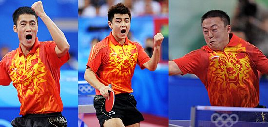 中國乒乓球隊18日晚改寫歷史,于北京奧運會乒乓球男子團體決賽中3:0擊敗德國隊,奪得國球歷史上的第18枚奧運金牌。 四年前在雅典,張怡寧為中國代表團摘得第一百枚夏季奧運會金牌,而王皓卻決賽負于柳承敏,丟掉分量最重的男單冠軍;四年后奧運來到北京,中國乒乓球隊在自己的家門口續寫輝煌。 這也是世界杯冠軍王皓的第一塊奧運會金牌。2000年悉尼奧運會上,王勵勤與閻森搭檔曾奪得一枚男子雙打金牌;馬琳則與陳?配對,在2004年雅典奧運會上擊敗中國香港的李靜/高禮澤,獲得男雙冠軍。 有了這枚男團金牌,兩年前在同一天完成人生另一個重大典禮的國乒男隊主教練劉國梁,也為曾經同是乒乓球國手的妻子王瑾獻上了最好的結婚紀念日禮物。 18日晚的決戰中,劉郎妙計再生威,王皓打頭陣、馬琳“捉”波爾的布陣效果頗佳,王勵勤/王皓的雙打實力又足夠遏制波爾/許斯。在中國組合面前,這對贏得過世乒賽亞軍的“歐洲第一雙打”只搶到首局機會,以13:11、5:11、8:11、7:11告負。 其實,在鉆石級強手面前,是金子也會被掩去光芒。當奧恰洛夫遇見當今世界男乒第一人王皓,這位未滿20歲的歐洲新星幾乎沒機會表現,“潛水艇”式發球產生的積極效果有限,反手優勢也變成對手眼里的小菜一碟,11:4、11:8、11:7的三局比分輕松吞噬了奧恰洛夫的雄心。 和兩天前半決賽上對陣韓國隊時極為相似地,中國隊決賽中的唯一波折也發生在馬琳身上。對陣“歐洲第一人”波爾的第二局中,11:7先下一城的馬琳在急于取勝的焦躁心態驅使下自亂陣腳、連連失誤,白送波爾一個7:1領先的完美開局,雖然馬琳稍后重拾穩定發揮,號稱“世界第一細膩”的前三板優勢也屢屢發揮效用,但在波爾對其反手的一通連續猛攻之后,馬琳以8:11失掉了一局。 接下來的兩局中馬琳持續穩健表現,在11:4輕取第三局后,又在第四局中以7:5領先,劉國梁這時及時暫停布置戰術,雖然暫;貋砗篑R琳先讓波爾扳回兩分,但此后的一系列攻防則沒讓對手抓到一點機會,最后一記勢大力沉的扣殺甚至讓波爾右手著地險些跪倒,11:7鎖定勝局。