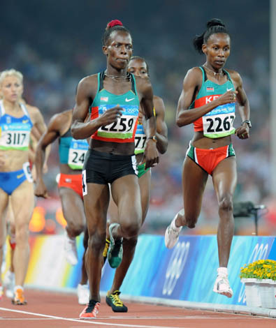 8月18日,肯尼亞選手杰利莫(前左)在北京奧運會女子800米決賽中奪得金牌。