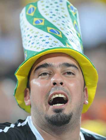 8月18日,巴西球迷。當日,北京奧運會沙灘排球1男子/4決賽結束。