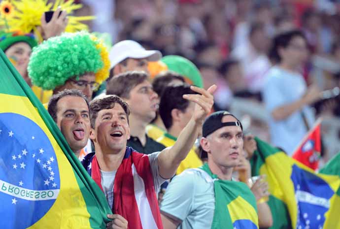 8月18日,巴西球迷。當日,北京奧運會沙灘排球1男子/4決賽結束。