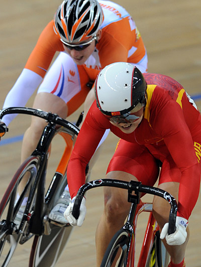 一團紅色火球與一團橙色火球,挾裹著全場觀眾陣陣驚雷般的吶喊聲,以電光火石之速,沖向終點線。50米,40米,30米,20米,10米,沖刺。郭爽贏了!不過,她贏的是銅牌。 盡管被寄予很大希望的郭爽沖金未成,但剛賽完的她在繞場騎行時,全場仍然一片歡呼,觀眾打出“郭爽真爽”的紅色橫幅為她慶祝勝利。 本來她應該可以力爭金牌。在先前的半決賽上,郭爽在前兩輪與上屆奧運會季軍安·米亞雷斯戰平。在關鍵的第三輪,這位內蒙古姑娘又一次發威,以非常微弱的優勢先于米亞雷斯沖過終點線。不幸的是,她因侵入對手車道犯規而被降級到季軍爭奪戰。 “奪得銅牌我感到非常高興和滿意,這證明我今后有更大的發展空間,”22歲的郭爽并沒有覺得銅牌代表遺憾。 但64歲高齡的法國教練丹·莫雷龍卻表示出非常遺憾:“盡管英國選手實力強勁,但郭爽完全可以沖擊金牌,銀牌對她猶如探囊取物,一枚銅牌實在太可惜了!痹鴰С鲞B續四次世錦賽冠軍、連續兩屆奧運會冠軍費·巴朗熱的莫雷龍在退休前沒能把郭爽帶成奧運會冠軍。 1986年2月26日,郭爽出生在郭靖曾經彎弓射大雕的大草原。13歲那年,她雙腳踏上了自行車運動生涯。2002年,她被派往瑞士的世界自行車中心學習,主攻女子爭先賽,師從馬涅教練,被馬涅教練贊為“聰明、天賦好、領悟力強、非常勤奮,是他最好的學生”。此時,她在世界級舞臺上已經嶄露頭角,脖子上已經掛了好幾枚亮燦燦的金牌。據統計,在2005年之前,小郭爽連續6次獲得世界自行車賽女子爭先賽青少年組冠軍。