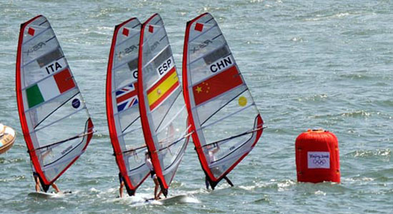 帆板比賽共計11輪比賽,分前十輪系列賽和最后一輪獎牌輪。前十輪比賽的成績去掉一個最差成績后排名前十位的選手進入最后的獎牌輪。中國選手殷劍在前十輪系列賽后位居第一,領先第二名上屆奧運會季軍、意大利選手森西尼5分。殷劍在前3輪的比賽中都是遙遙領先其他選手,獲得了第一的名次。之后她的成績有些起伏,連續獲得了兩個第8。好在最后一輪系列賽中,殷劍發揮出色,又獲得了一個第一,超越意大利選手森西尼躍居榜首。