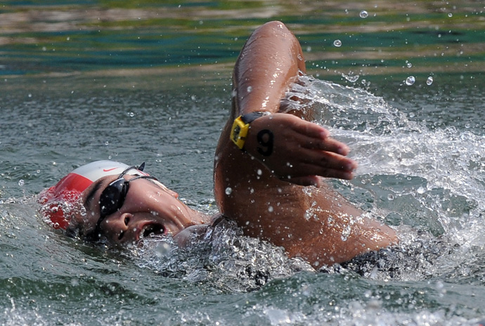 中國選手方晏喬在女子10公里馬拉松游泳比賽中,她以2小時01分07秒9的成績名列第19。