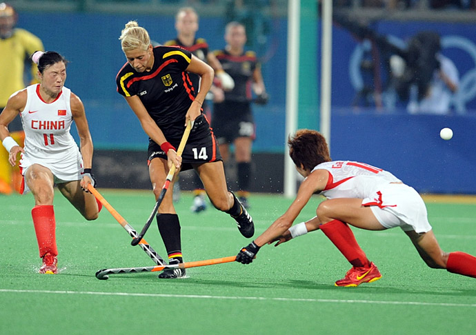 8月20日,在北京奧運會女子曲棍球半決賽中,中國隊以3比2勝德國隊,晉級決賽。