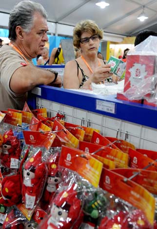 8月20日,幾位外國朋友在北京奧運村商業文化街選購奧運紀念品。隨著北京奧運會比賽項目逐個結束,北京奧運村商業文化街特許商品生意更加紅火,來自世界各地的賓朋紛紛來到這里選購奧運紀念品。
