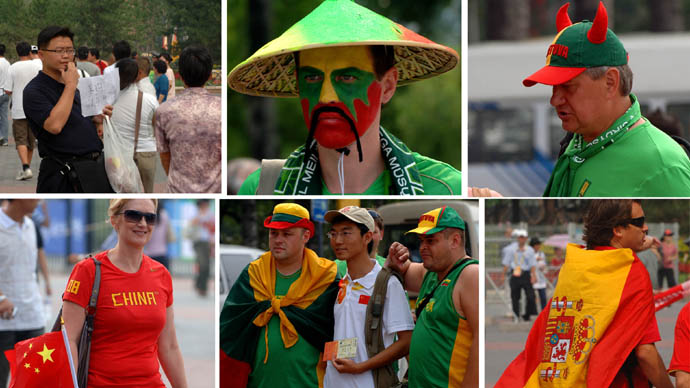 北京奧運會籃球比賽進行得如火如荼,而每次比賽時場內外各國球迷的表現也成為另一道獨特的風景。這組拼版照片分別是一名球迷在賽場外求購門票(上左),兩名立陶宛球迷的奇異打扮(上中、上右),一名支持中國隊的外國球迷(下左),中外球迷合影(下中),一名西班牙球迷身披國旗(下右)(8月20日攝)。
