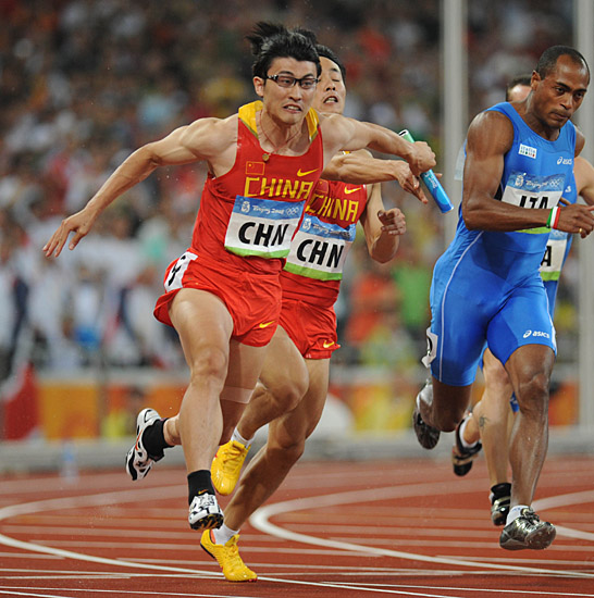 21日晚,中國男子4×100米接力歷史性闖入奧運會決賽! 當晚,北京奧運會男子4×100米預賽在“鳥巢”進行,中國隊分在第二組,四棒依次為溫永毅、張培萌、陸斌、胡凱,他們在全場觀眾的吶喊聲中,跑出39秒13,名列小組第四,幸運晉級決賽。 同一組的牙買加隊名列小組第一,成績為38秒31,這也是牙買加隊的本賽季最好成績。先后打破100米與200米世界紀錄的博爾特沒有出場,前世界紀錄保持者鮑威爾壓軸跑第四棒。加拿大隊與德國隊分列這一小組的第二、第三名。 在男子4×100米預賽第一小組,特立尼達和多巴哥、日本、荷蘭、巴西成功進入決賽,長期在這個項目上保持優勢的美國隊再一次出現配合失誤,掉棒遭到淘汰。 除了美國隊外,第一組的南非隊、波蘭隊和尼日利亞也未能完成比賽;在第二組的比賽中,英國和意大利也同樣因為違規而被取消成績,在奧運歷史上,同時有6支隊伍無成績也實屬罕見。 在進入決賽的8支隊伍中,中國隊的成績排在最后一名。胡凱表示:“明晚決賽起碼不要墊底,我們肯定拼了!”