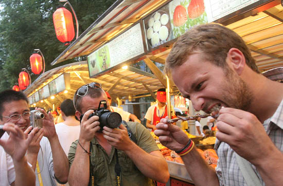 2008年的北京奧運會,吸引了眾多的外國人來到中國,除了奧運會,北京什么最吸引他們?他們在北京生活得怎樣?記者走訪了在北京生活的幾個外國朋友,讓他們談談在北京熱中的“吃喝玩樂”。
