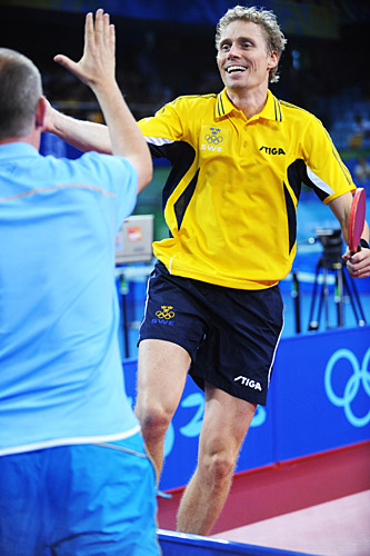 已經42歲的佩爾森22日下午4:1擊敗39歲的普里莫拉茨,贏得了在北京奧運會乒乓球男子單打半決賽中與中國頭號種子王皓對陣的機會。 作為前瑞典“三駕馬車”之一,曾和乒壇“常青樹”瓦爾德內爾并肩作戰多年的佩爾森在這場“六朝元老”之間的對決中又找回了過去的感覺,而他在開局落后時所表現出的韌性和耐性,更與雅典奧運會上還打進半決賽的瓦爾德內爾如出一轍。 這場比賽最終戰成5局,比分是7:11、11:6、11:8、14:12、11:9。關鍵性的第四局中,佩爾森原本以10:5領先,卻被反手技術占優的普里莫拉茨連扳6分,以11:10反超。此后,比賽在雙方均無失誤的情況下進入拉鋸戰,而佩爾森最終證明自己是堅持得更久的那一個。 賽后佩爾森對自己的表現極為滿意:“我打得很好,進攻很主動,關鍵是我打了這么多年,很明白怎樣才能贏球,希望明天對王皓我也能發揮這么好,我知道我在北京有很多粉絲,也許沒老瓦那么多,但我會好好表現的! 評價本輪對手時,佩爾森甚至開起了普里莫拉茨的玩笑:“我們已經交手了這么多年,彼此之間都太了解了,我很高興自己能贏得這么艱苦的比賽,但又為老普難過,他7次試圖翻盤,可惜都沒成功! 對于“高齡”的質疑,佩爾森很肯定地回答:“年齡不是問題,大家都看到了,我步伐很快,身體完全沒問題!钡攩柶鹚欠襁會參加四年后的倫敦奧運會時,這位年齡恰好與老瓦宣布退役時相同的老將說:“哦,是的,這將是我的最后一次奧運會了,我參加了有乒乓球以來的全部六屆奧運會,我想這夠了!彪m然不再參加奧運會了,但佩爾森表示,是否參加十月份歐洲錦標賽的問題,他還要回去和教練林德好好商量一下。 作為上世紀80年代末的世乒賽亞軍、90年代初的世界杯賽冠軍,佩爾森曾在2000年悉尼奧運會上擊敗風頭正勁的中國選手劉國正晉級,直到半決賽中負于后來奪冠的孔令輝,他才停住前進的腳步。 四年前老瓦在雅典殺進半決賽時就曾驚碎眾多眼鏡,如今同樣高齡的佩爾森即將對陣王皓,他能否取得超過老瓦的成就?佩爾森頗給自己留余地地說:“2003年的施拉格和2004年的柳承敏都搶了中國人的冠軍,但他們都沒長久,中國人還是統治乒壇。如今馬琳和王皓的反手都進步了不少,王勵勤也證明了他的反手很好,這對歐洲人來說會更難取勝。所以我說打破中國這面‘墻’是非常困難的,但也不是完全沒有可能。歷史上拿到奧運會男單冠軍的有兩個中國人、兩個韓國人,還有一個瑞典人,我想我還有機會! 輸了球的普里莫拉茨表現得仍然紳士,他祝賀佩爾森的同時也說:“他表現得很好,而我也不是很失望,因為這已經是我的第六屆奧運會了,帶著這樣的成績回家,克羅地亞人會很高興!弊屗u價中國選手的實力,他說:“在乒乓球這個項目上,以前歐洲領先過,但看看現在,王勵勤的弧圈比我們更有力,步伐比我們更快,這很說明問題! 距離佩爾森和普里莫拉茨的這場四分之一決賽開始還有半個小時的時候,十幾名身穿黃色球衫、手舉藍色黃十字國旗的瑞典奧運代表團成員,他們在看臺上做出各種有趣的助威動作,使北京大學體育館里自開賽以來第一次有了“加油”之外的異國歌聲,也為佩爾森和普里莫拉茨這場經典之戰添加了色彩。