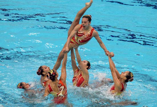 中國“美人魚”終于登上奧運會領獎臺,實現了中國花樣游泳自1988年首次參加奧運會以來的重大突破!在23日下午舉行的北京奧運會花樣游泳集體項目比賽中,她們完美演繹了一曲震撼人心的《黃河》,最終以97.334分的總成績獲得一枚寶貴的銅牌。 中國姑娘在昨天的集體技術自選動作比賽后暫居第三。當天的自由自選動作比賽中,中國隊第五個出場,表現主題為中國龍,背景音樂則是大氣磅礴的《黃河》,還融入了民歌《茉莉花》等元素。 時而如鮮花綻放,時而如蛟龍出海,時而如波浪翻滾,中國“美人魚”的完美表演獲得了觀眾的熱烈掌聲,也得到了裁判的認可。最終,中國隊的自由自選動作得分為48.750分,以總成績為97.334分暫居第一。 隨后出場的日本隊也表現了龍的主題,但整體動作缺乏新意,她們只得到47.167分,總成績為95.334分,與美國隊并列,排在中國和加拿大隊之后。 “水立方”立即傳出熱烈的歡呼聲,中國姑娘知道自己戰勝了實力最為接近的日本隊,她們將首次登上奧運會的領獎臺。 最后兩個出場的分別是實力強大的西班牙隊和俄羅斯隊。俄羅斯隊是連續5屆世錦賽冠軍,同時還在悉尼、雅典兩屆奧運會上包攬了雙人和集體金牌,在20日結束的北京奧運會雙人項目上,她們已經把金牌收入囊中。 最終,裁判對俄羅斯的表現給出了8個滿分10分,她們的自由自選動作得分為滿分50分,從而以99.500分的總成績再次衛冕集體項目冠軍,這也是她們連續三屆奧運會包攬花樣游泳金牌。西班牙隊是雅典奧運會兩個項目的第四名,她們最終獲得集體項目銀牌,這也是她們在北京奧運會上獲得的又一枚花樣游泳銀牌。 中國姑娘和教練相擁而泣,慶祝這來之不易的勝利。 “獲得這塊獎牌是意料之中的事,但當這一切真的降臨了,還是覺得特別激動!”曾三次參加奧運會的隊長張曉歡激動地說,“堅持這么多年,我們終于有了收獲!” “中國給我這么大的信任,能取得奧運會獎牌當然很開心!”來自日本的中國隊教練井村雅代開心地說,“這是我的夢想,今天我們終于夢想成真;中國姑娘訓練十分刻苦,獎牌就是她們的目標! 曾多次帶領日本隊獲得奧運會獎牌的井村雅代還說:“作為日本教練帶領中國隊獲得獎牌,說明日本教練的水平得到世界的認可! 雅典奧運會亞軍日本隊最終與美國隊獲得并列第五,日本隊的小林寬美出現賽后虛脫,同時正是由于小林寬美力量不夠,在最后階段腳底觸到水池底部被扣分,影響了日本隊的積分排名。加拿大隊在比賽中表現了中國十二生肖的主題,她們最終獲得第四名。