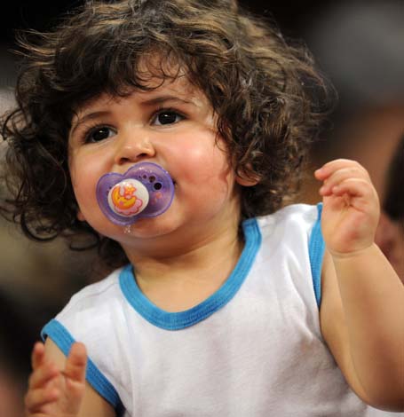 8月23日,北京奧運會田徑比賽在國家體育場“鳥巢”繼續進行。圖為現場的小觀眾。