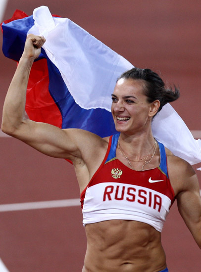 “只有天空是我的極限!碑斠列涟鸵拊凇傍B巢”漂亮地越過5米05的橫桿,這位撐桿跳高“女沙皇”不僅輕松蟬聯了奧運桂冠,而且自2003年以來第24次打破世界紀錄。 2004年以來,伊辛巴耶娃幾乎將所有撐桿跳高世界比賽的冠軍都收入囊中。她一般都是以每次提高一厘米的方式來刷新自己保持的世界紀錄,但每次5萬美元的獎金并不是她唯一的動機。 “和布勃卡打破35次世界紀錄相比,我如果要超過布勃卡,還需要打破世界紀錄12次!币列涟鸵拚f,“我將很快打破5米10的紀錄!