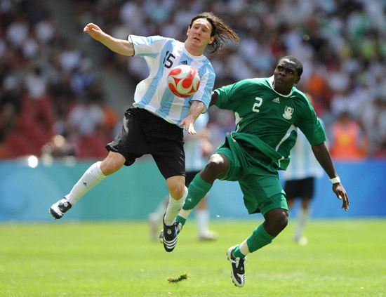 經歷了巴塞羅那俱樂部與阿根廷隊的反復爭執,21歲的梅西終于如愿來到了奧運賽場!皡⒓訆W運始終是我唯一的選擇!泵肺髟趦煞降某镀ぶ斜3种鴪远ǖ臎Q心。 北京奧運會賽場上,梅西是阿根廷藍白風暴的偉大導演,也是該隊區別于其他球隊的“核武器”。對科特迪瓦隊時,他用一次進球和一次助攻擊潰了強大的對手;對荷蘭隊的比賽中,他又用一個進球和一記助攻幫助球隊鎖定勝局;在3:0擊敗巴西隊的比賽中,梅西幾乎參與了每一次進球,與尼日利亞隊的決賽也是他的巧妙助攻幫助隊友攻入制勝球。 梅西不僅征服了球迷,還征服了更多體育界同行。NBA巨星科比已成為其粉絲,親自來看他比賽,還說梅西是所有運動員中最吸引他的,因為他在場上和別人都不一樣。尼日利亞隊隊員在頒獎儀式前甚至爭搶著和梅西合影。