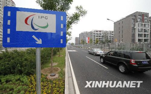 8月28日,北京殘奧村預開村,這標志著殘奧村進入賽時運行階段。北京殘奧村將于30日正式開村。這是北京殘奧村外的殘奧會專用車道標志。