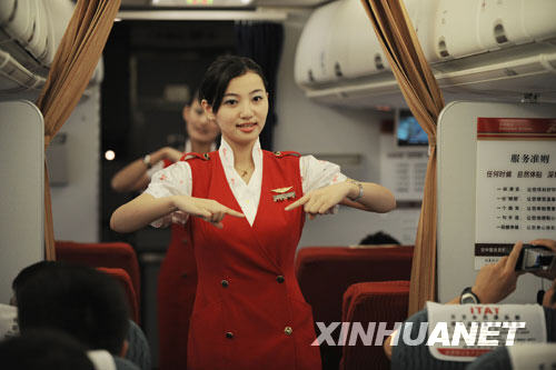 8月30日,執飛深圳至武漢的深航ZH9897航班乘務員蔣康康為旅客表演手語歌曲《微笑》。