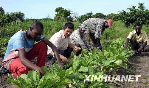 9月6日,在塞內加爾首都達喀爾遠郊的中國蔬菜種植示范園,農藝專家盧永剛(左二)指導當地農民蔬菜種植技術。從2005年開始,十多名來自中國的農業技術專家在西非之角的達喀爾遠郊設立一片占地1.3公頃的中國蔬菜種植示范園。經過2年多耕耘,示范園已經成功培育蔬菜30余種,培訓當地農業技術人員3190余人。 | |