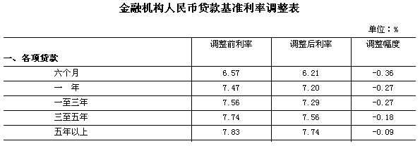從2008年9月16日起,下調一年期人民幣貸款基準利率0.27個百分點,其他期限檔次貸款基準利率按照短期多調、長期少調的原則作相應調整;存款基準利率保持不變。