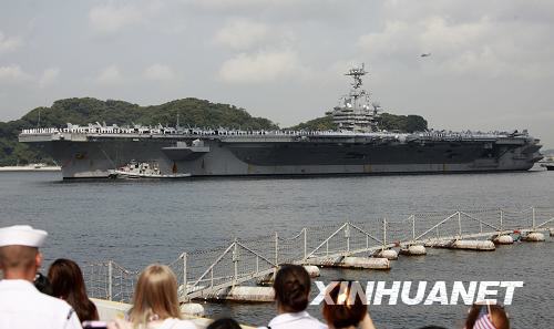 當天,美國最大的核動力航空母艦之一“喬治·華盛頓”號抵達日本橫須賀美國海軍基地正式駐扎。這是美國核動力航母首次駐扎海外。