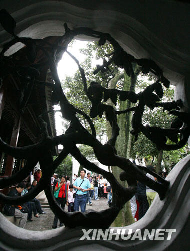 當日是國慶黃金周的第六天,蘇州古典園林獅子林內造型別致的各式花窗,令前來游覽的中外游客陶醉其中,大飽眼福。