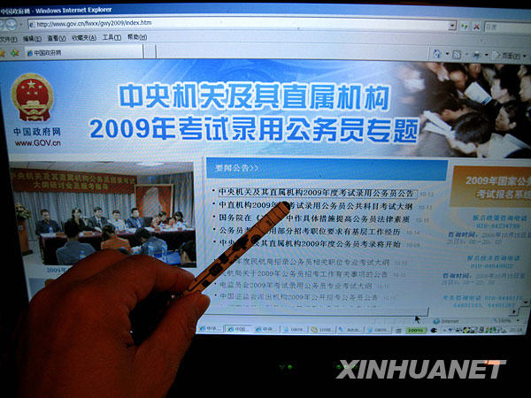 當日,2009年國家公務員考試開始報名,報名全部采取網絡報名的方式進行,不設現場報名。