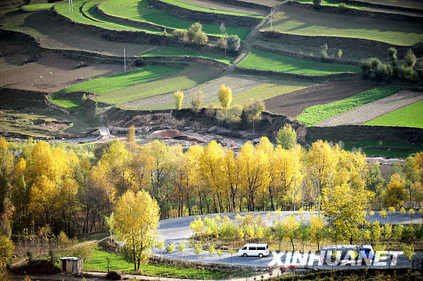 10月15日,幾輛汽車行駛在甘肅省積石山保安族東鄉族撒拉族自治縣境內的公路上。