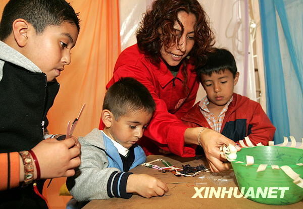 10月18日,在墨西哥城舉辦的墨西哥第八屆圖書節上,輔導老師指導兒童拼接玩具。
