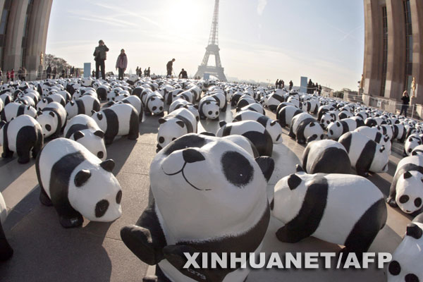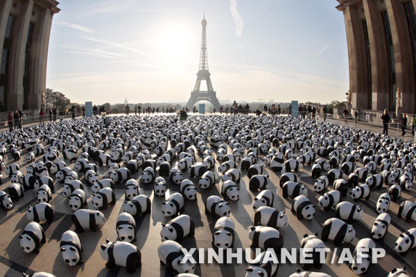 10月18日,在法國首都巴黎,1600只紙制熊貓被放置在廣場上供人們參觀。新華社/法新