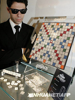 這款游戲道具由3萬多顆施華洛世奇水晶制成,價值2萬美元(約合13.4萬人民幣)。這個水晶拼字游戲將在網上拍賣,以紀念此游戲面世60周年。拍賣所得款項將捐贈給美國田納西州一家兒童醫院。新華社/法新