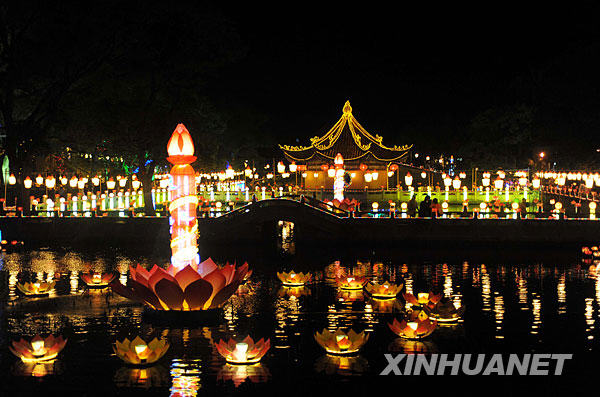 當日,佛教名山浙江普陀山舉行“心燈·心愿”佛燈藝術展,千余盞體現傳統佛教文化藝術的彩燈點亮海島,通過燈光、音樂營造出普陀山“海天佛國、琉璃世界”的文化特質。